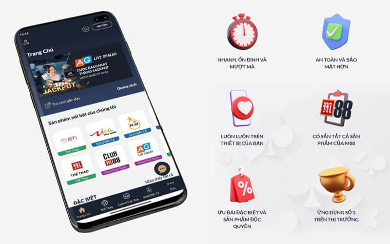 Việc sử dụng ứng dụng M88 trên điện thoại mang lại những lợi ích vượt trội so với việc truy cập thông qua trình duyệt web truyền thống trên máy tính. Ứng dụng được thiết kế tối ưu hóa cho các hệ điều hành phổ biến, giúp tốc độ phản hồi nhanh hơn và giảm thiểu tối đa tình trạng giật lag trong quá trình đặt cược. Đặc biệt, app M88 có khả năng tự động cập nhật các đường link truy cập mới nhất, giúp người chơi không bao giờ phải lo lắng về vấn đề bị chặn bởi các nhà mạng tại Việt Nam.